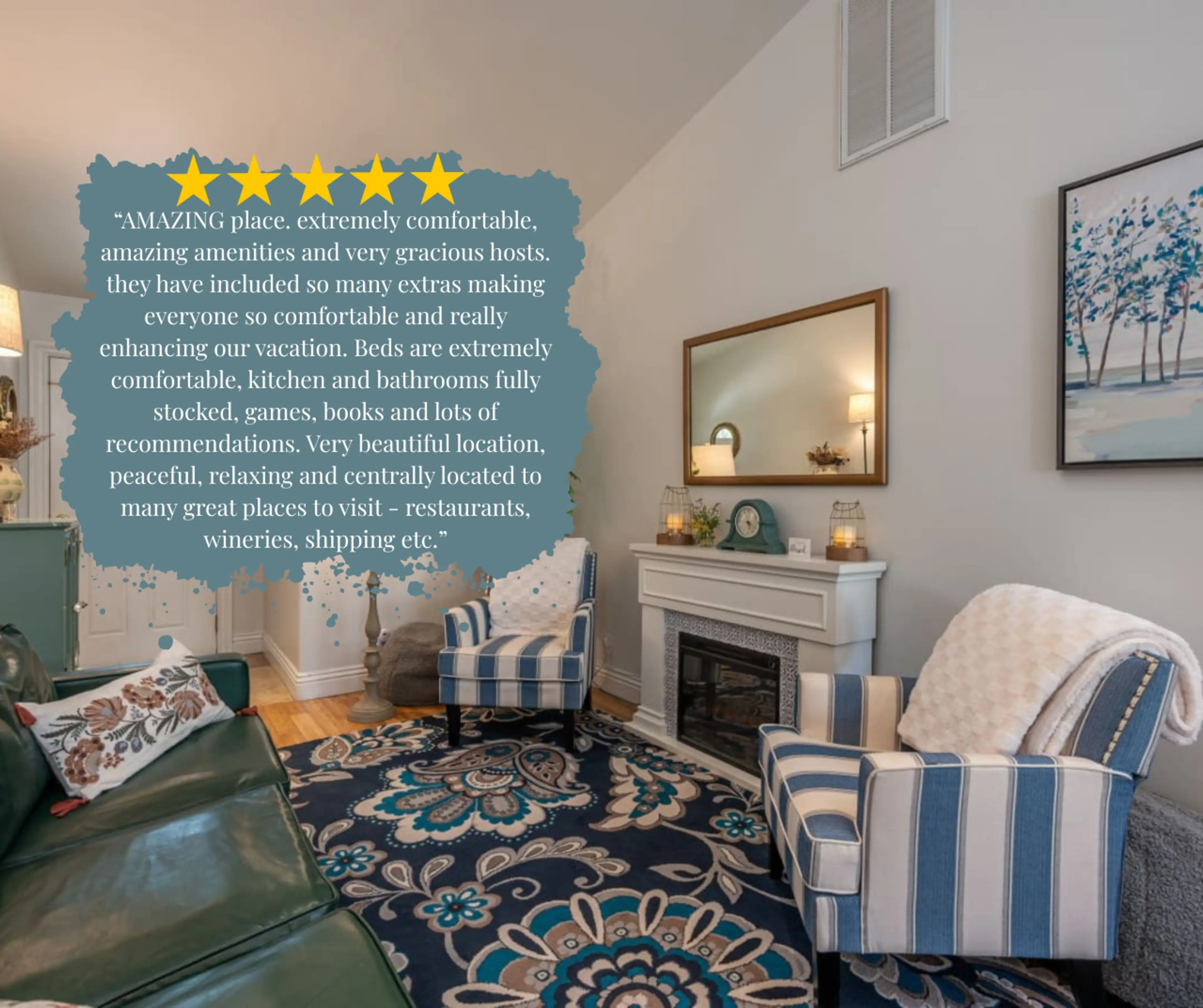 Had a lovely visit in this house. It was warm and inviting and lovely touches everywhere. Everything was clean and easy to access. No notes.